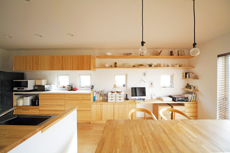 カウンターがあれば、たとえば家族宛ての郵便物を置いておいたり、子どもと宿題をしたりするスペースとして大活躍。